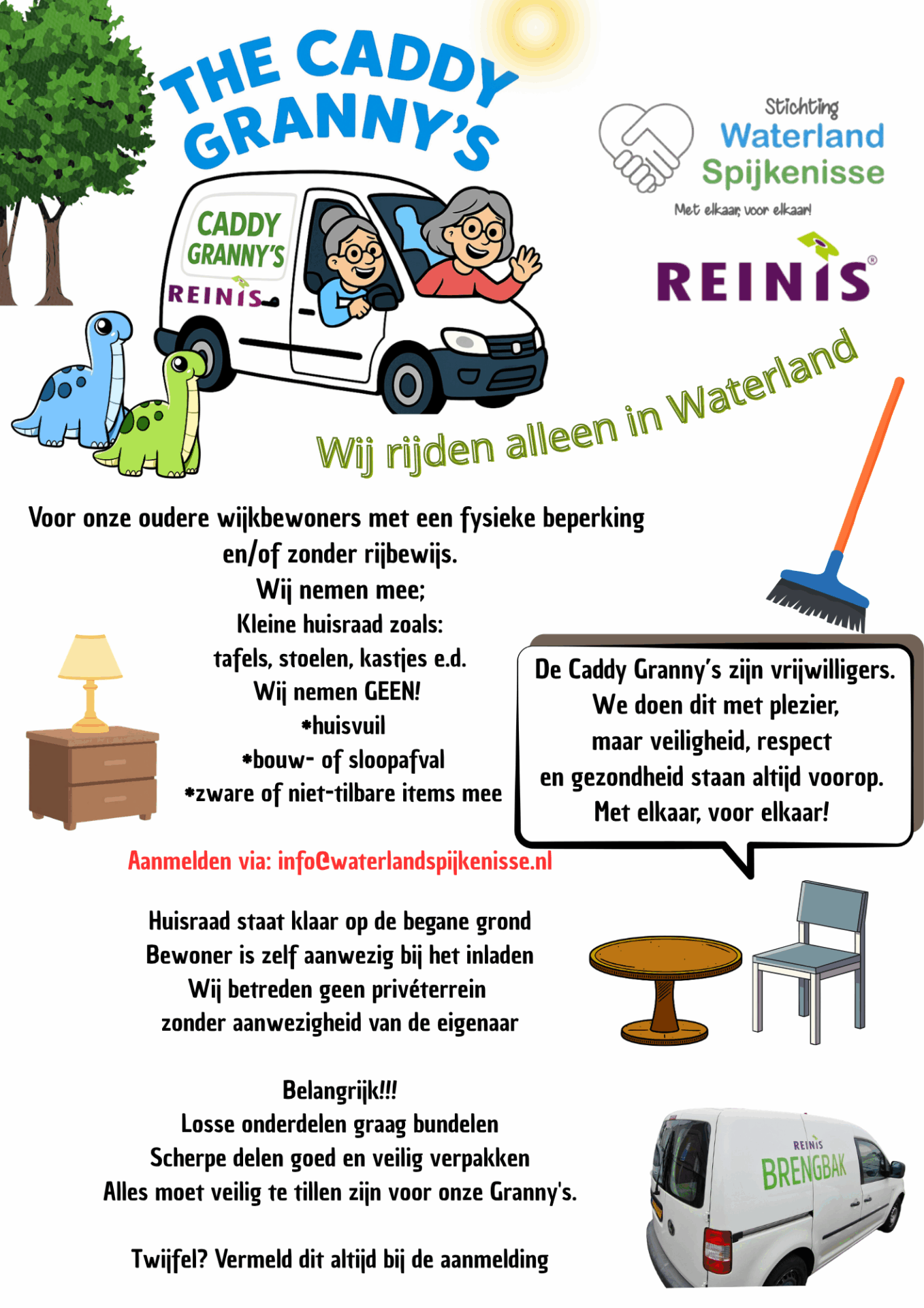 Op dinsdag 14 april zijn de Caddy Granny’s weer aanwezig in onze wijk.